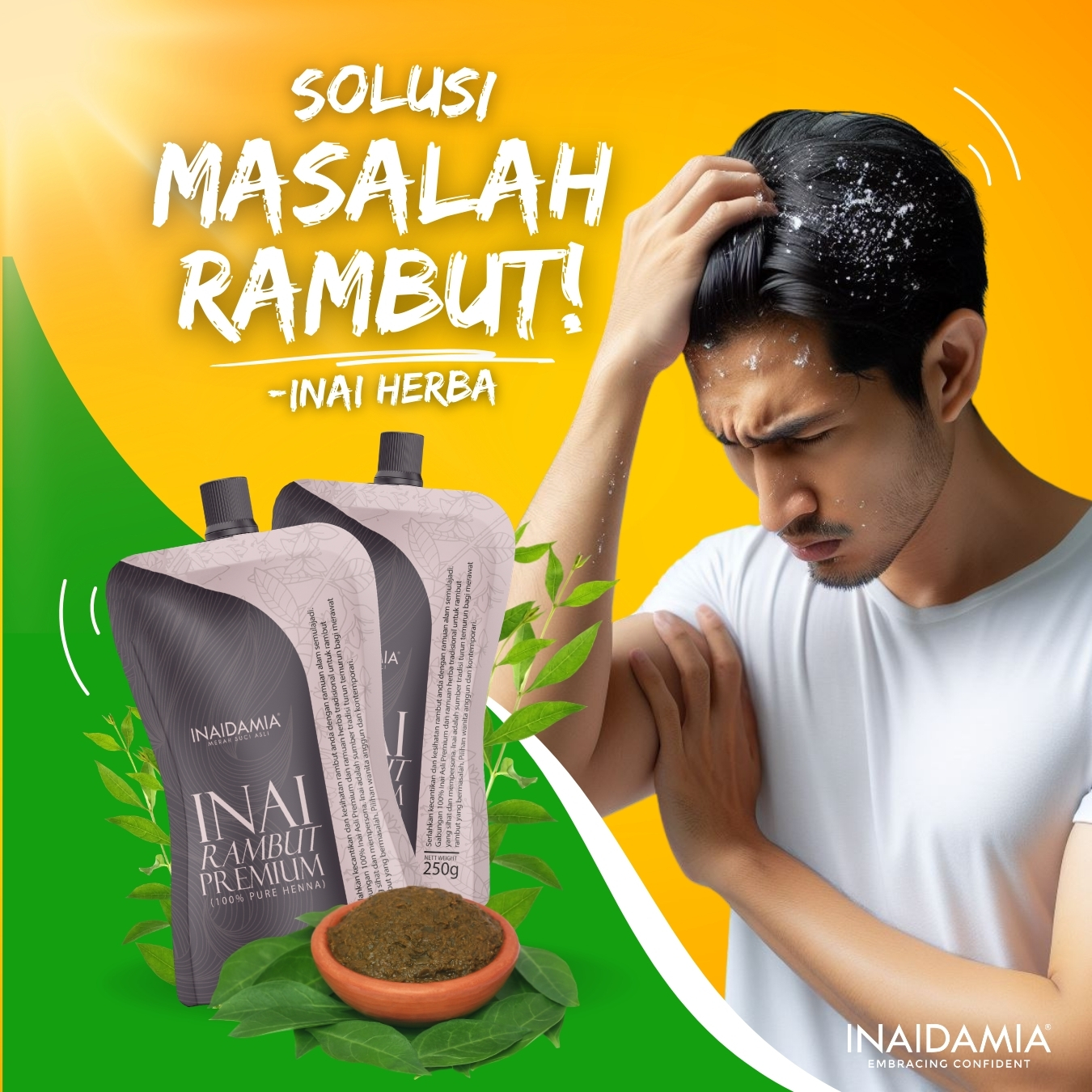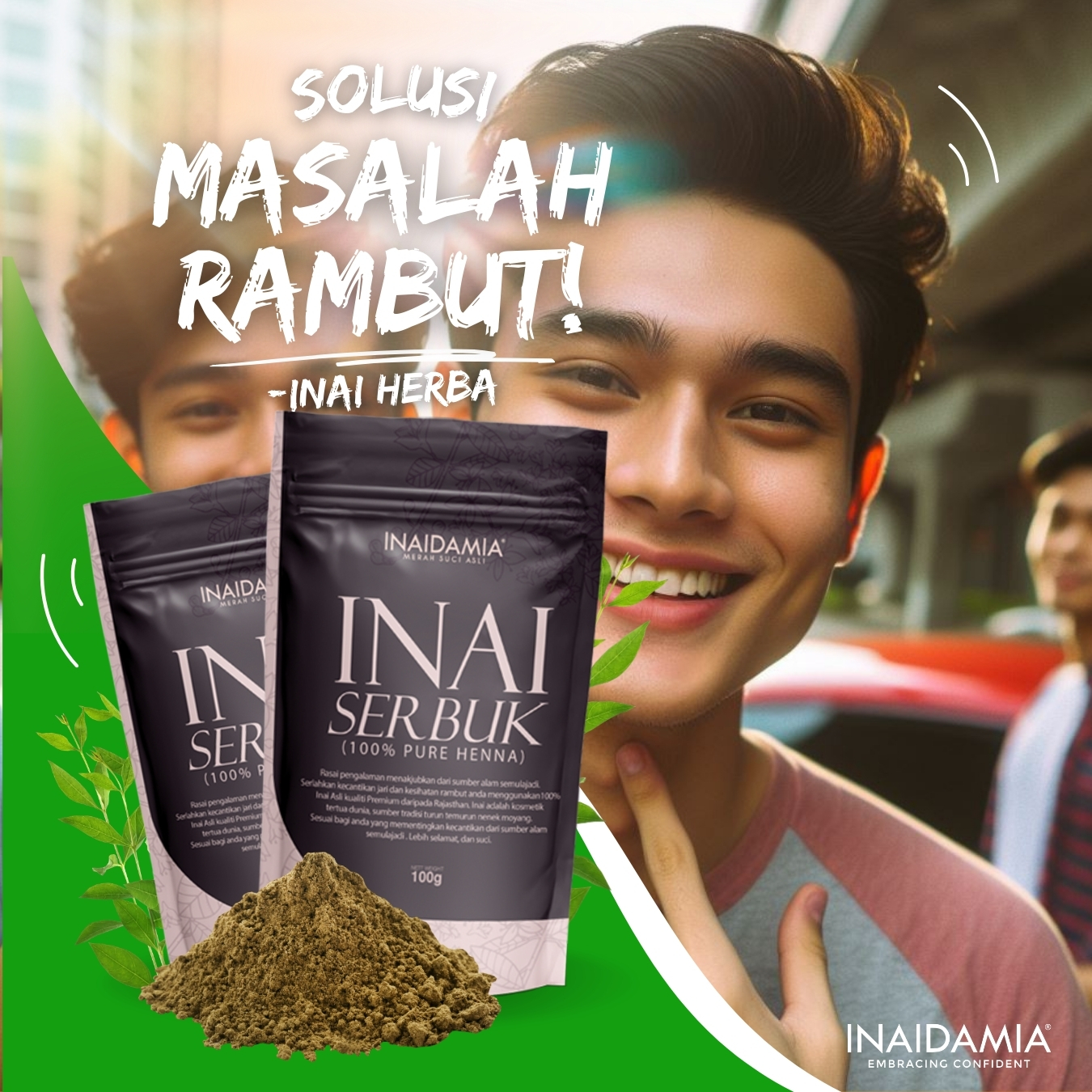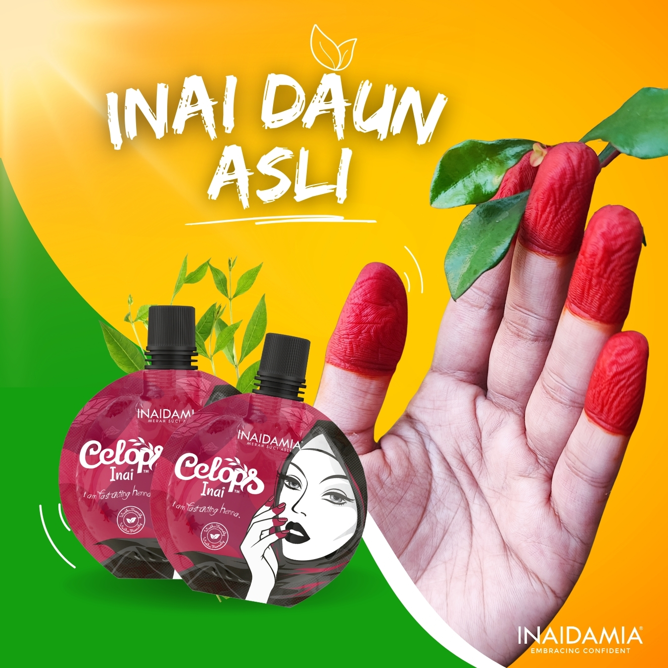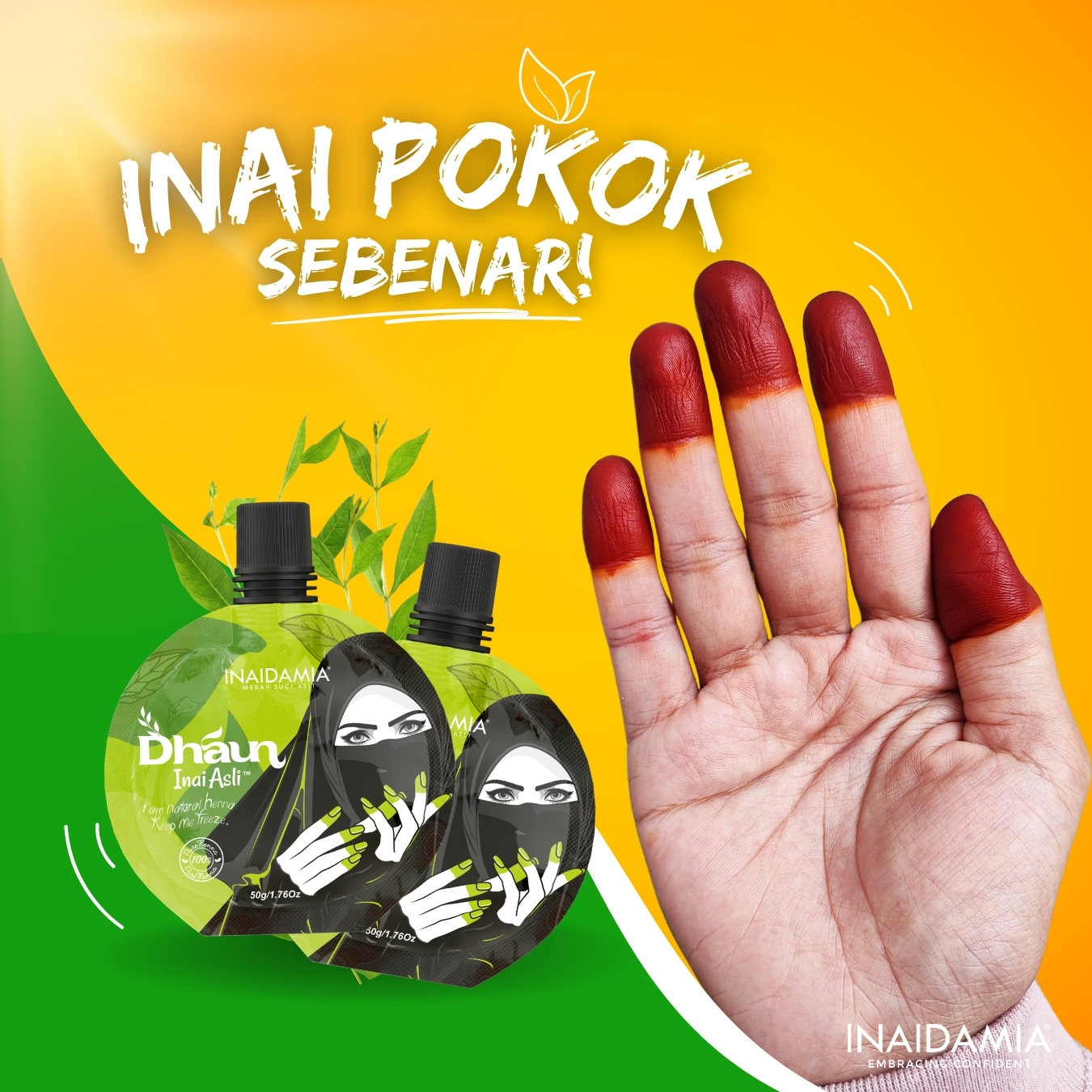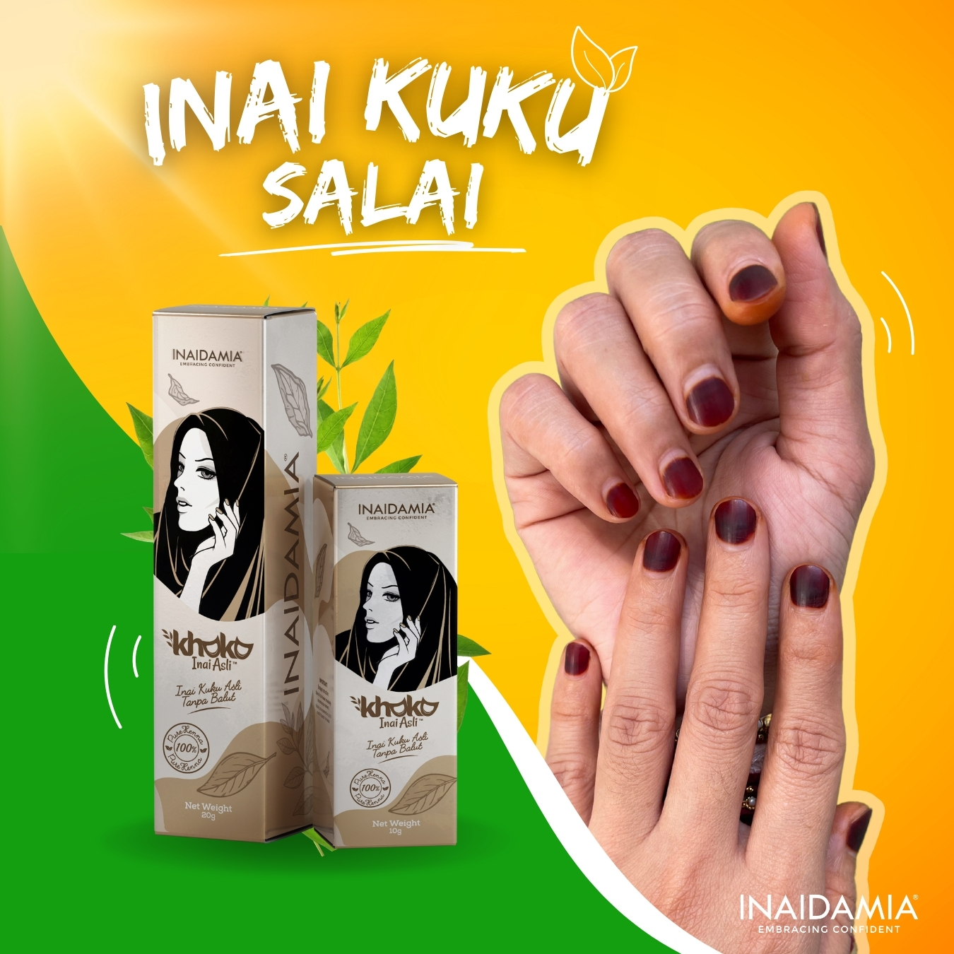 Inaidamia membawakan produk berasaskan daun inai asli dari sumber bahan semulajadi tanpa bahan pewarna terlarang.